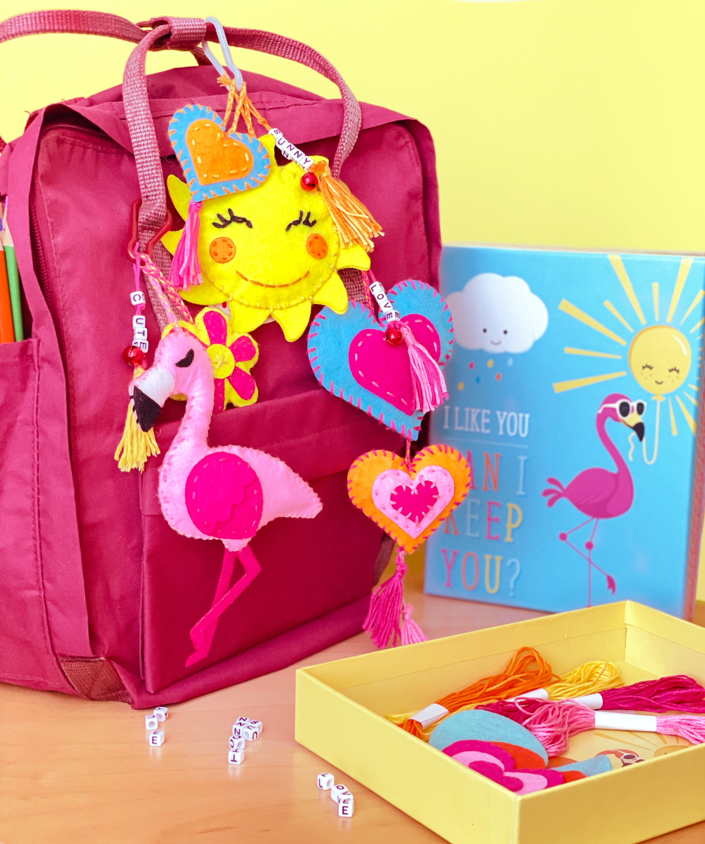 Outfit a backpack, purse, lunchbox or suitcase in your own personal style creatingcolorful hanging charms!