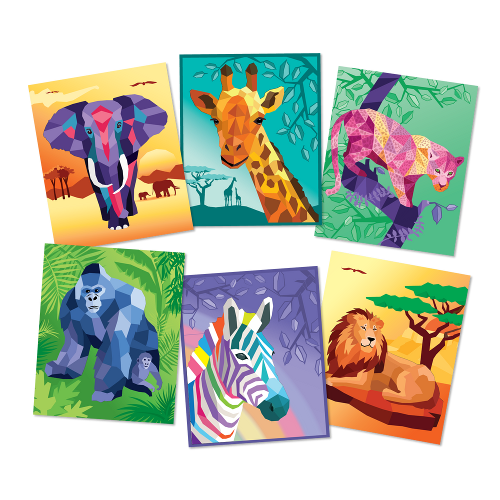 Embark on a safari bringing animals of the African plains to life using stickers! Create colorful sticker “paintings” featuring an elephant, lion, giraffe, gorilla, leopard
